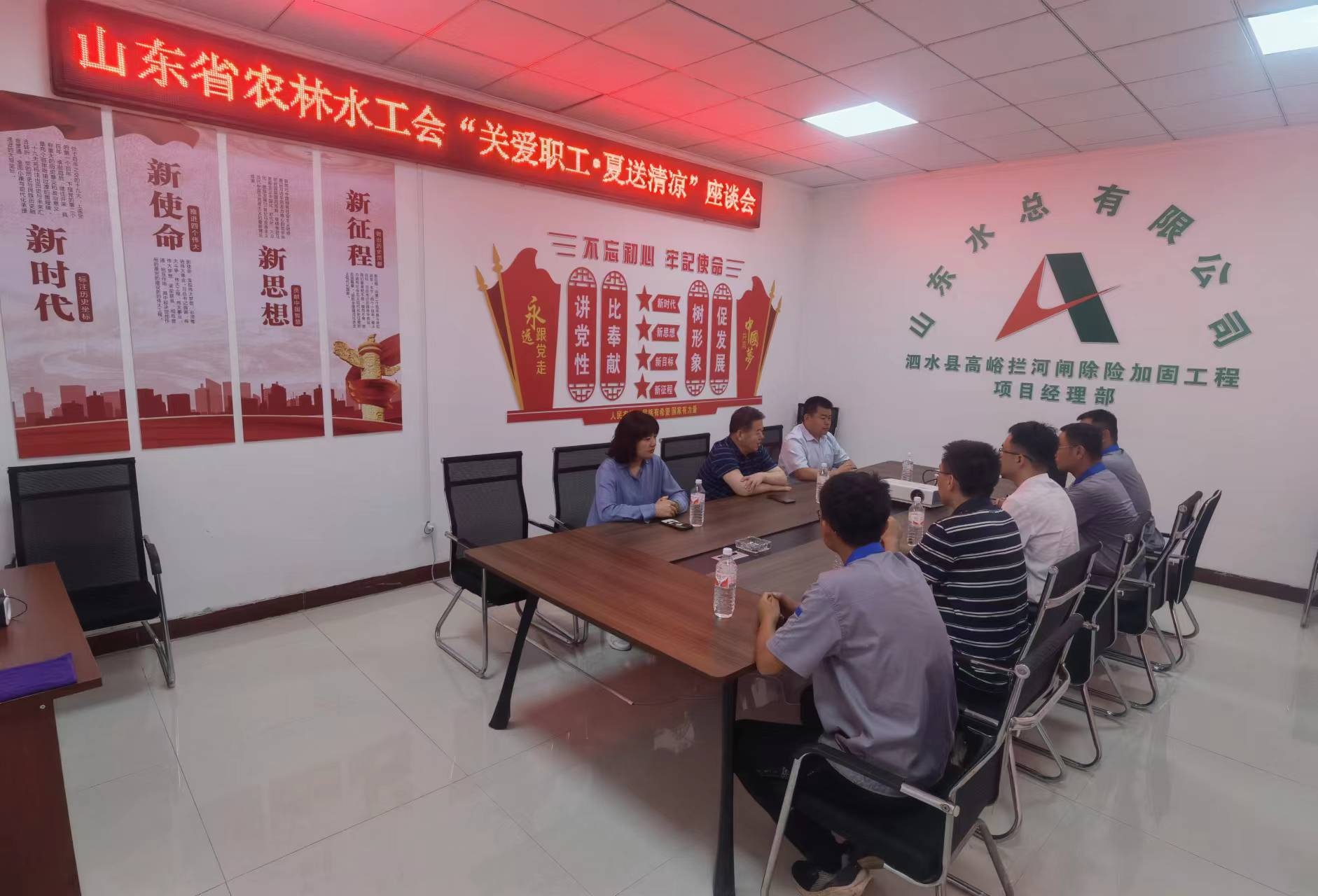 7月19日,山東省農(nóng)林水工會主席張志剛一行到公司泗水縣高峪攔河閘除險加固工程開展“夏送清涼”慰問活動。公司黨委副書記、工會主席周少林,黨委組織部部長孫凌,第七分公司總經(jīng)理韓棟,副總經(jīng)理常征陪同參加慰問。