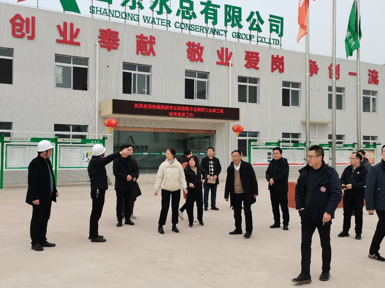 徐煉英一行聽取項目總體建設情況匯報,到項目現(xiàn)場查看工程進展情況,對工程進展和質量管控表示認可,對山東水總在內江市水利建設做出的貢獻給予高度評價。