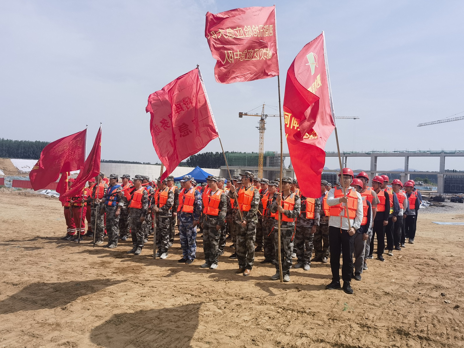 5月9日下午,第七分公司泗水縣泗河岳陵攔河閘項目部聯(lián)合泗水縣水務(wù)局、泗水縣應(yīng)急局等單位開展了岳陵攔河閘工程防汛應(yīng)急救援演練。本次模擬演練設(shè)置壩前坍塌搶護(hù)、壩后管涌搶護(hù)、增高子堰搶護(hù)3個演練場景。