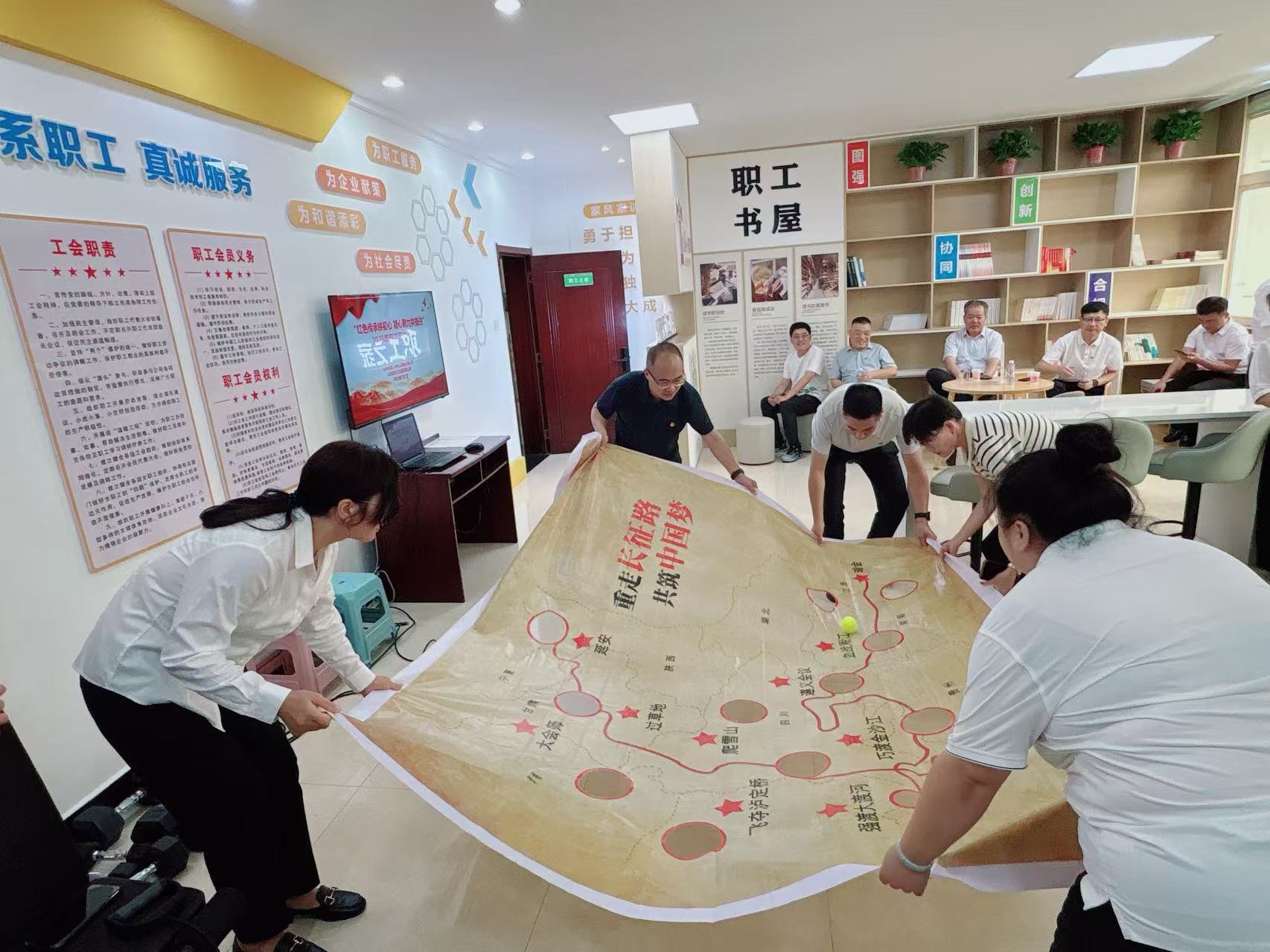 “踏尋長征印記,聚力闖關征途”環(huán)節(jié)以精心繪制的長征行軍路線圖為指引,帶領職工“重走”長征路。各小組爭分奪秒向“大會師”目標進發(fā),每通過一個關卡都仿佛觸摸到那段波瀾壯闊的歷史,在協(xié)作闖關的過程中,深刻感悟長征精神的偉大內(nèi)涵。
