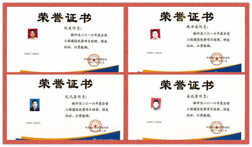 公司向建等四名同志被評為2016年度全國工程建設優(yōu)秀項目經(jīng)理