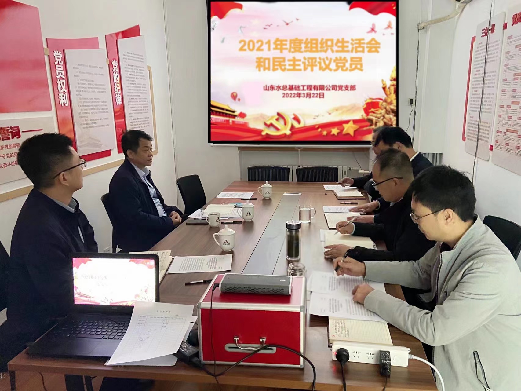 3月22日上午,基礎公司黨支部召開2021年度組織生活會并開展了民主評議黨員工作。公司黨委委員、副總經理李光市、投資經營部副部長史鳴到會指導。會議由黨支部書記朱兆同主持,基礎有限公司全體黨員參加了此次會議。