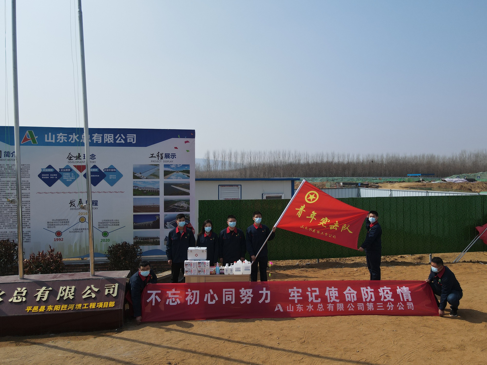 臨沂地區(qū)東陽攔河壩、重興攔河閘與平邑興水河項(xiàng)目部黨員聯(lián)合行動,劃分責(zé)任區(qū)域,積極組織項(xiàng)目全員進(jìn)行核酸檢測,統(tǒng)一采購發(fā)放防疫物資、建立個(gè)人防疫臺賬。在保證人員健康安全的前提下,高效開展生產(chǎn)工作,在黨員干部的帶領(lǐng)下,青年職工們積極響應(yīng),勇于擔(dān)當(dāng)、甘于奉獻(xiàn),貢獻(xiàn)著青春力量。