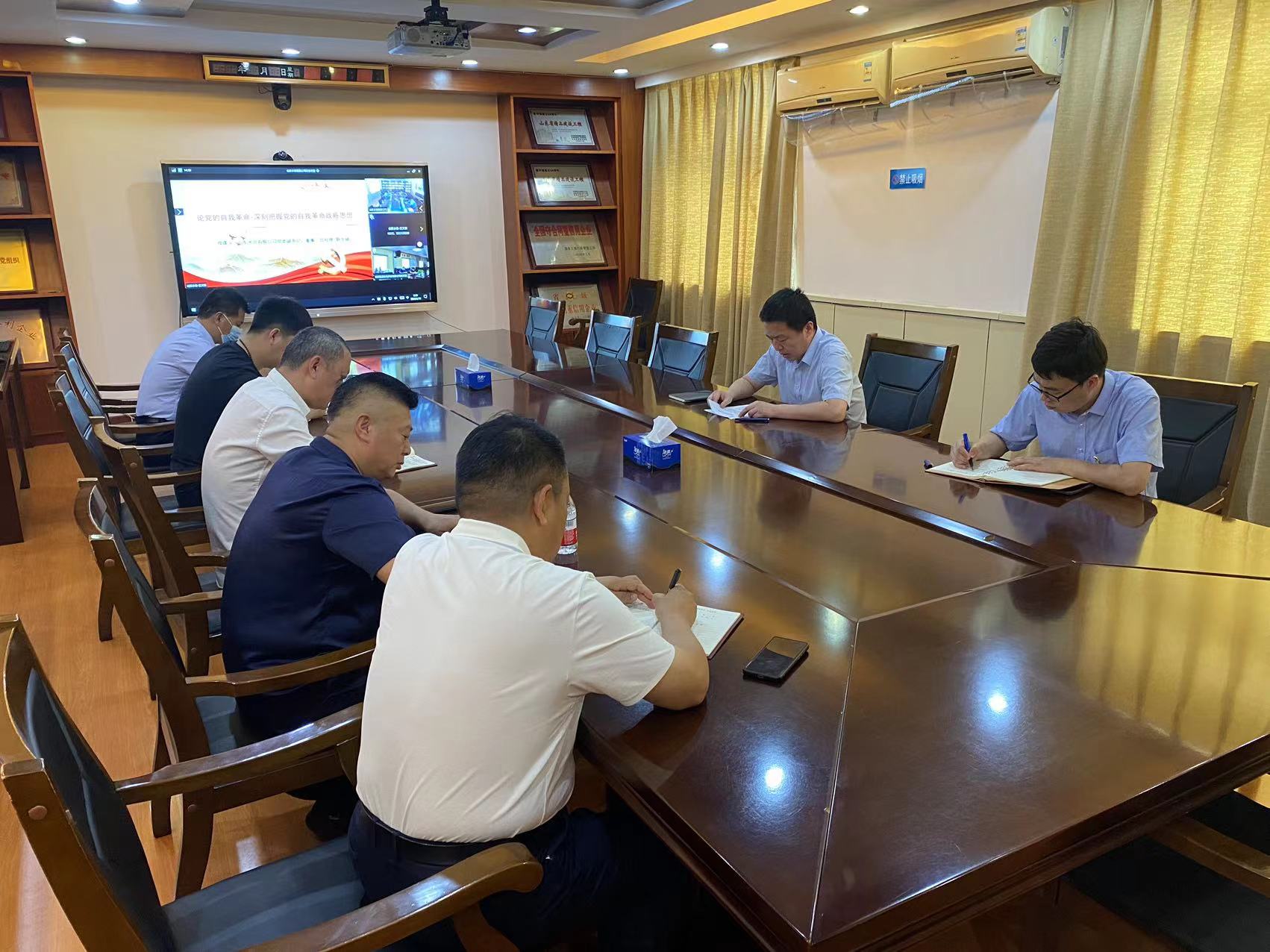 6月19日,公司黨委副書記、董事、總經(jīng)理靳文碩以“論黨的自我革命—深刻把握黨的自我革命戰(zhàn)略思想”為主題,為建筑勞務公司黨支部、杭州魯潤公司黨支部講授主題教育專題黨課。
