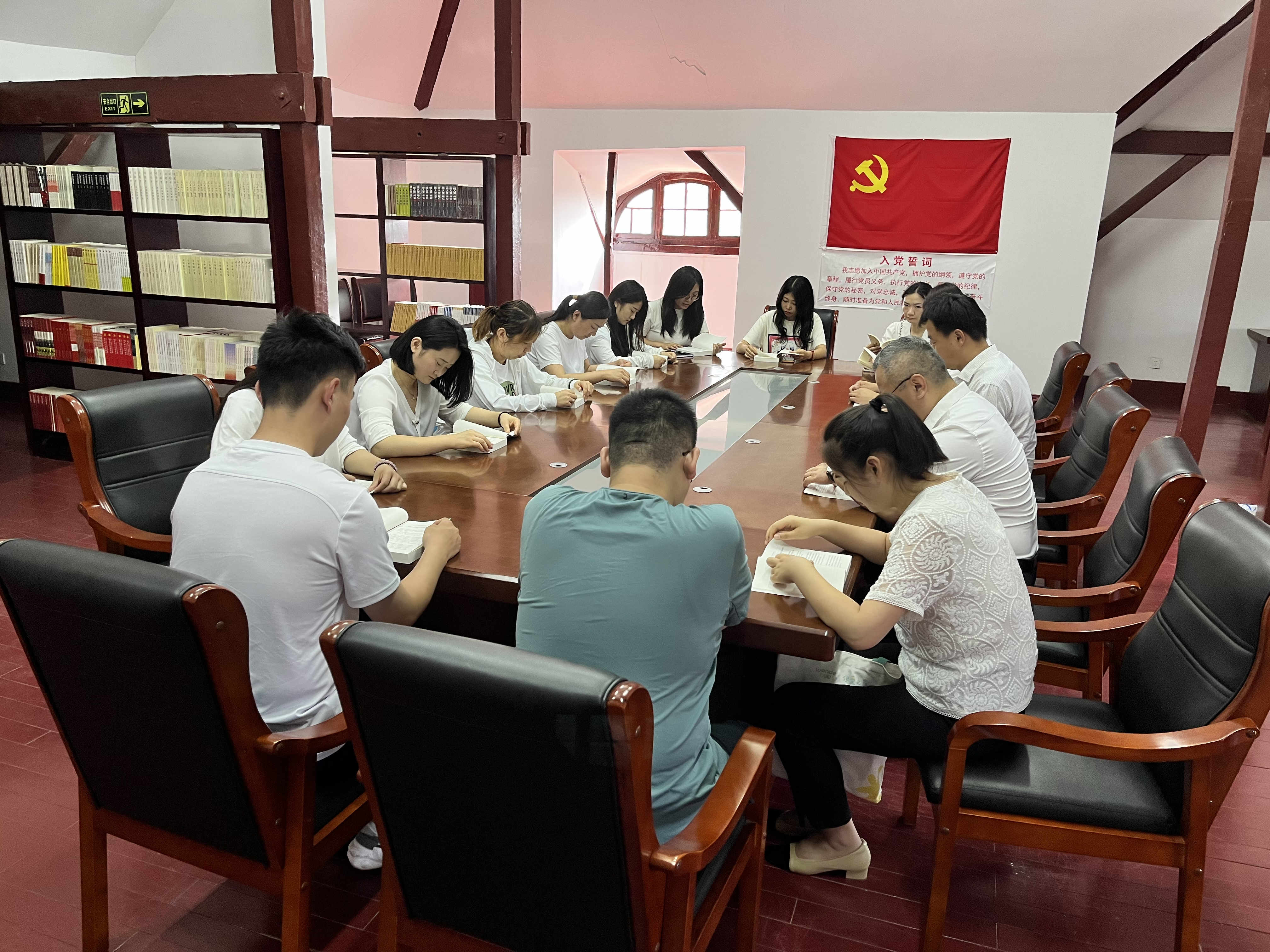 參觀結(jié)束后,全體黨員面對(duì)黨旗,舉起右手,莊嚴(yán)宣誓,大家的心一如加入中國(guó)共產(chǎn)黨的那一刻赤誠(chéng)。隨后在紀(jì)念館閱覽室開展了一次特殊的主題教育集中學(xué)習(xí),共同學(xué)習(xí)了《習(xí)近平新時(shí)代中國(guó)特色社會(huì)主義思想專題摘編》部分章節(jié)內(nèi)容,并結(jié)合本次參觀內(nèi)容暢談心得體會(huì)。